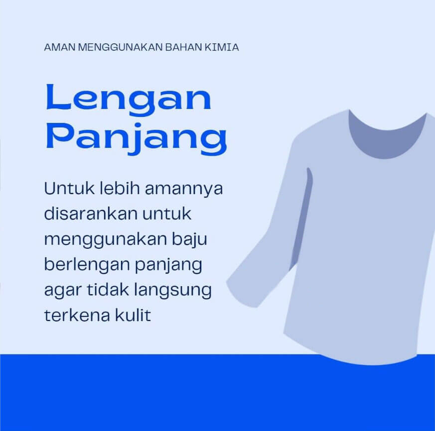 - Untuk lebih amannya disarankan untuk menggunakan baju berlengan panjang agar tidak langsung terkena kulit