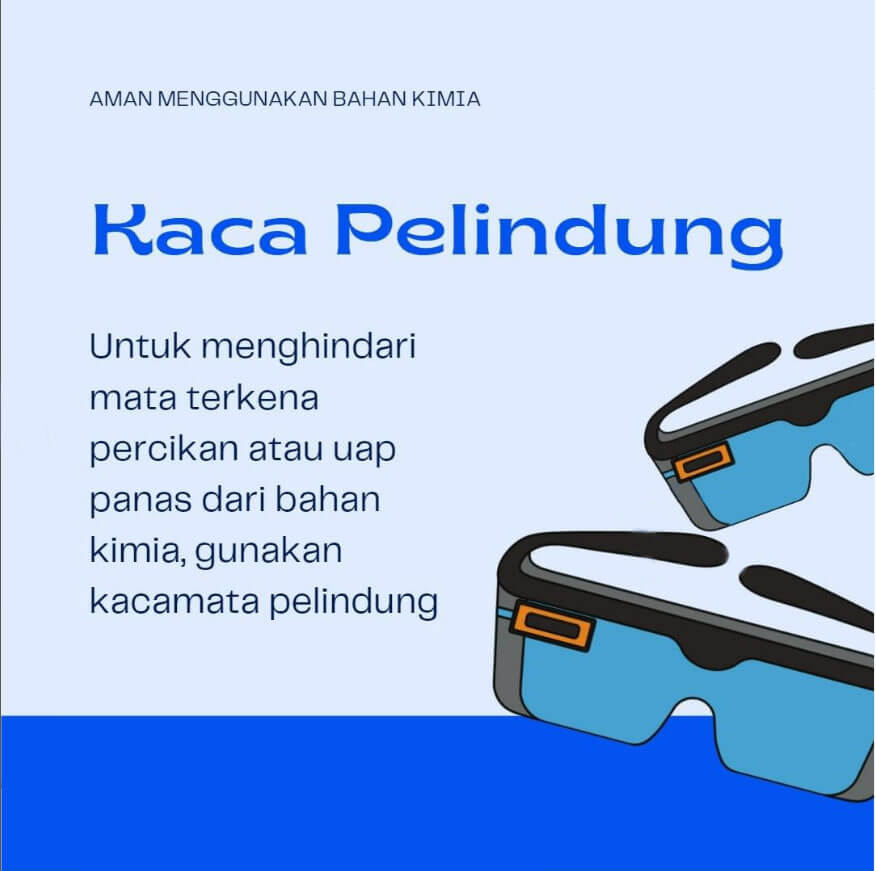 - Untuk menghindari mata terkena percikan atau uap panas dari bahan kimia, gunakan kacamata pelindung