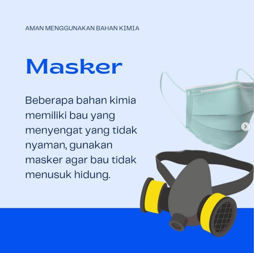 - Beberapa bahan kimia memiliki bau yang menyengat yang tidak nyaman, gunakan masket agar bau tidak menusuk hidung