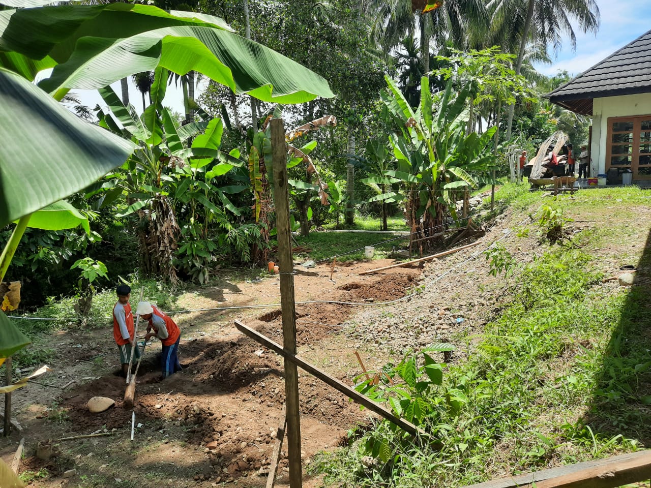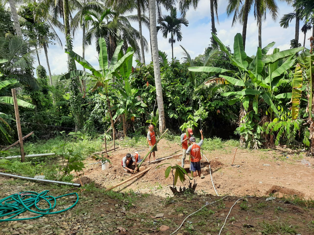 Di daerah ini kami sangat di untungkan dengan tekstur tanah yang lembut, mudah di gali dan tidak ada pembatas jadi membuat kami lebih cepat dalam proses penggalian kolam renang, dengan tenaga 4 tukang yang kami bawa dari kantor dan 3 tukang lokal disana menjadikan pekerjaan lebih mudah dari yang kami bayangkan.